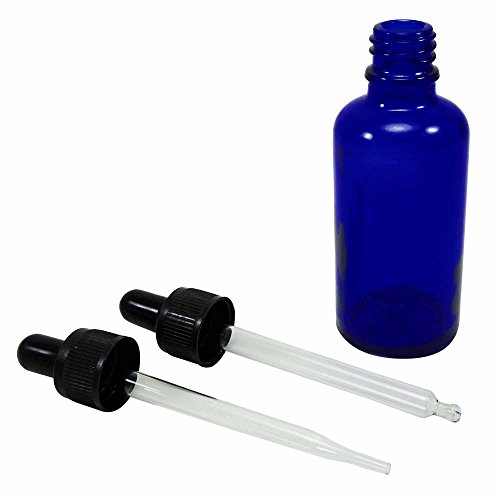 Blue glass empty bottle with glass eye dropper.