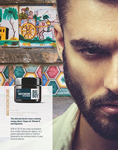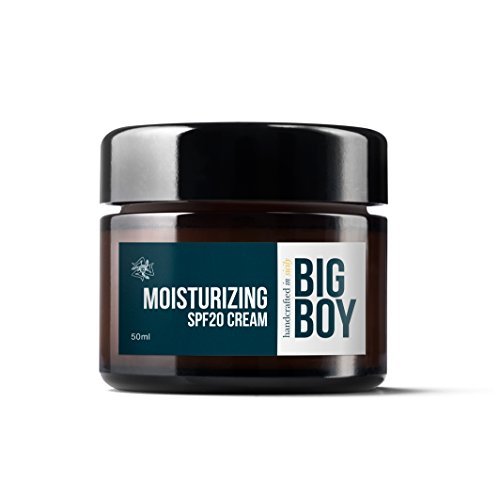 -. Binding : Health and Beauty -. Brand : BIG BOY -. EAN : 8051770427070 -. Feature : The highest quality Men's Moisturizer Cream. Made in an artisan lab in a small village near Palermo. Using Sicilian ingredients. / This delicate facial cream ticks all the right boxes thanks to its unique formula which contains, among others:olive oil extract, Argan oil, Vitamin E, and Squalene Plant. / It works as a short and long term moisturiser which also soothes the most common skin irritations. / This facial cream with its SPF 20 also works as a sunscreen reducing skin ageing caused by extended periods in the sun which is a key factor in skin ageing. / The cream is a perfect antioxidant thanks to Vitamin E enhanced by the combined action of Lipoic Acid and Deanolo. -. IsAdultProduct : 0 -. Label : Big Boy -. Manufacturer : Big Boy -. Model : BB05 -. MPN : BB01010007 -. PackageQuantity : 1 -. PartNumber : BB01010007 -. ProductGroup : Beauty -. ProductTypeName : BEAUTY -. Publisher : Big Boy -. Studio : Big Boy -. Title : BIG BOY SPF20 Mens Moisturizer 50ml - Made in Italy - Anti Ageing Action Cream