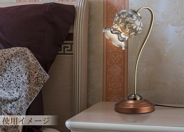 | すずらんの形のガラスセードに水彩画のようなプリントを施し落ち着いた雰囲気に仕上げました。テーブルライトとして、ベッドサイドテーブルなどにオススメです。口金がE17で60Wまでの電球であれば、お好みの電球をご使用いただけます。 |