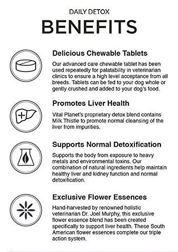 Daily Detox is fortified with time-honored nutraceuticals such as MSM and Choline to support your dog's normal detoxification process. Contains a potent herbal blend designed specifically to help maintain normal liver and kidney function. This hand-harvested South American flower essence blend has been created specifically to support liver health.