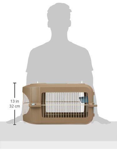 -. Feature : Overall dimensions: 23L x 15W x 12.5H inches / Brown color with blue accents / Durable resin plastic and metal wire construction / Easy-access storage compartment / Includes door-mounted food and water tray