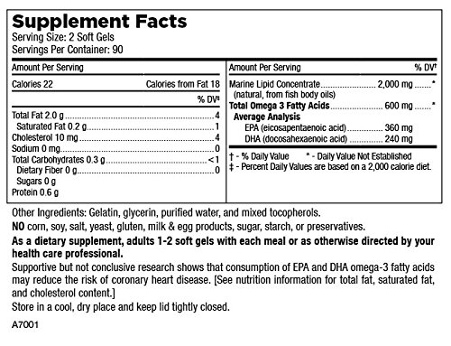 BRAIN NUTRIENT OMEGA-3 : Omega-3 fats eicosapentaenoic acid (EPA) and docosahexaenoic acid (DHA) from fish oil are associated with supporting triglyceride levels within a healthy range.