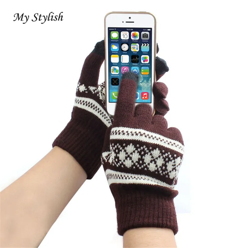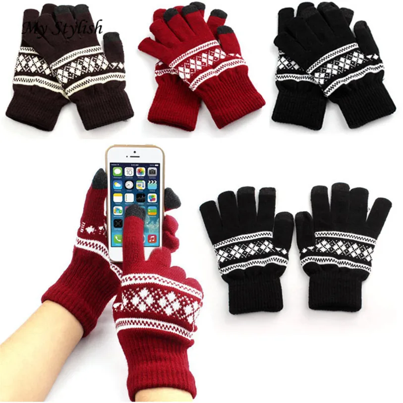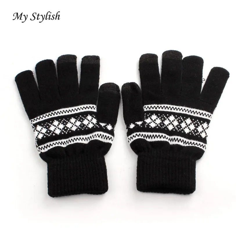 1Pair New Jacquard Unisex Screen Soft Gloves Mitten Warm Winter Knit (NO Retail Box. Packed Safely in Bubble Bag)