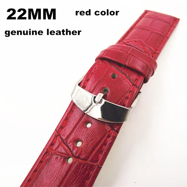 소매 1 개 고품질 22 미리메터 정품 가죽 시계 밴드 시계 스트랩 레드 color-070707