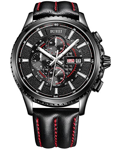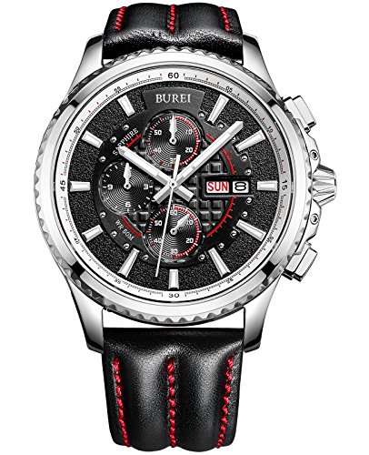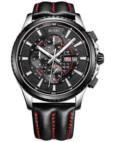 (바오쇼)BUREI 손목시계 야광 크로노그래프 날짜 쿼츠 블랙 문자판 맨즈