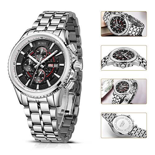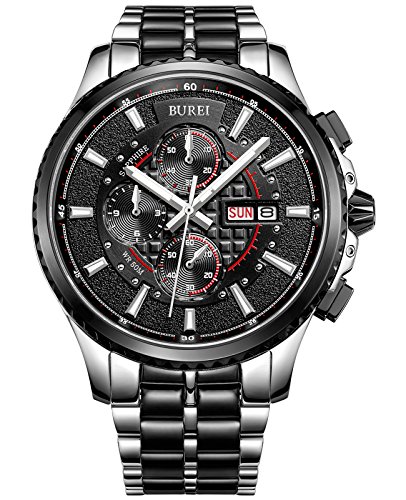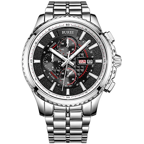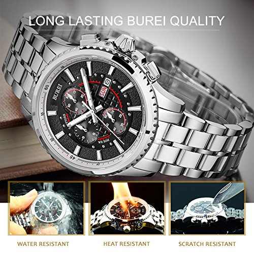 원본상품명: (バオショ)BUREI 腕時計 夜光 クロノグラフ 日付 クォ?ツ ブラック文字盤 メンズ