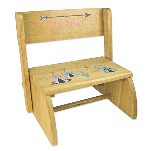 Product Description Our MyBambino Personalized Natural Flip and Folding Step Stool with Coral TeePee Design can be used as both a stool and a seat. Easy to transport between bedrooms, kitchens, and bathrooms. 0