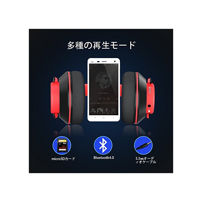1>【다종의 재생 모드】1)이 헤드폰은 Bluetooth4.0부착,wireless 음악을 즐길 수 하실 수 있습니다.2)microSD카드 슬롯 부착,최대32GB의 마이크로SD카드에 대응 가능하고,좋아하는 음악을 카드에 넣고 두고, 헤드폰에 끼워넣으면,헤드폰 것만으로 음악이 재생 가능합니다.3)3.5㎜오디오 포토 부착,헤드폰의 배터리잔량이 부족 시,오디오 케이블로 PC 등이라고 접속해 유선에서도 이용 가능합니다.4)이 헤드폰은 FM라디오 기능 첨부 오고, 일본의 주파수에 대응 할 수 있는 때문에,라디오로서도 사용 할 수 있는 때문에,편리합니다.와이드FM도 대응 가능합니다.(주의:취급 설명서 에서의 FM라디오의 조작 설명은 오류가 어느(있는) 때문에,여기서 설명 하겠습니다.FM라디오 기능 사용 방법:A,본기가 수신대기 경우에,M버튼을 짧게 누르는 것에,FM모드로 잘라 바꿉니다.B,FM라디오 모드에,전원 스위치를 2회 연속으로 누르면,자동으로 방송국을 검색하는 모드로 들어 갑니다.C,검색 완료 하고 나서,》버튼과《버튼을 것으로,방송국의 사이에 바뀝니다.D,사용 환경에 의해FM라디오의 신호로 영향이 있습니다.)