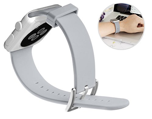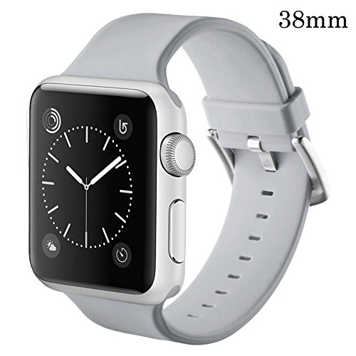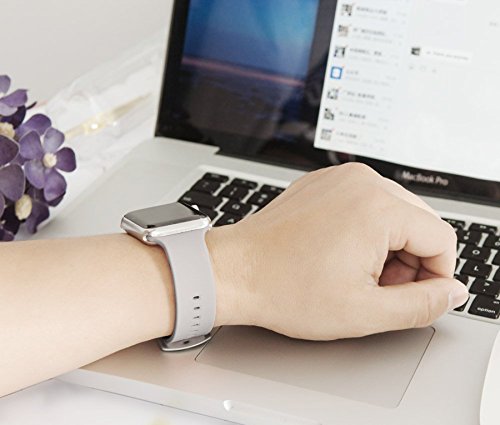 Nimon For Apple Watch Band Series 1 Series 2 Soft Sports Silicone Bracelet Strap Wristband Replacement Watchband (Grey M/L 38mm)