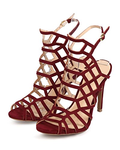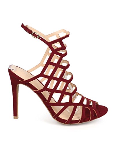 Wild Diva DH75 Women Suede Peep Toe Thin Strap Hollow Out Stiletto Mule Sandal