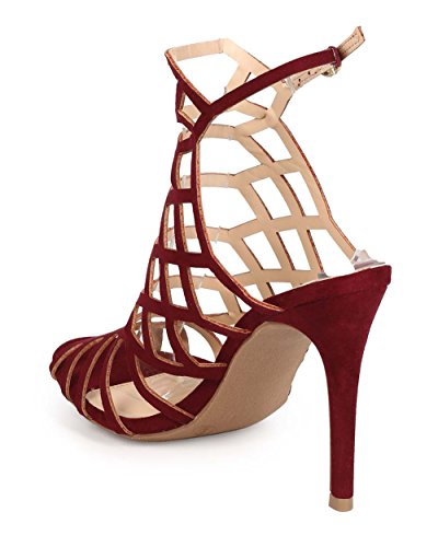 Product Description Designed with suede upper, peep toe, slim stencil cutout, single sole, lightly padded insole, covered stiletto heel and slingback closure. 0