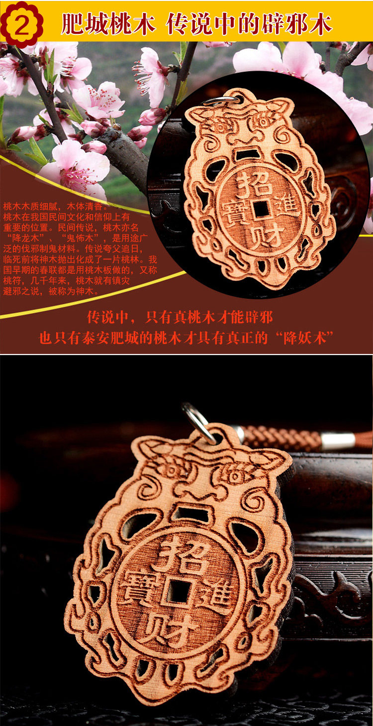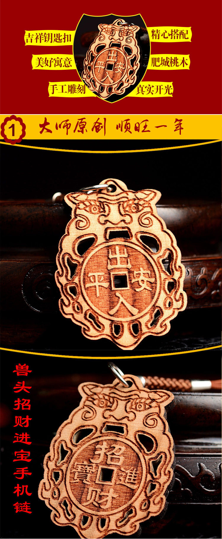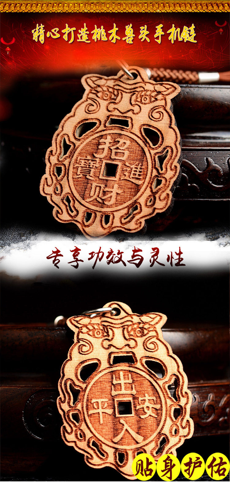 天然桃木木雕挂件 手机链 兽头桃木镜小挂件 招财 保平安