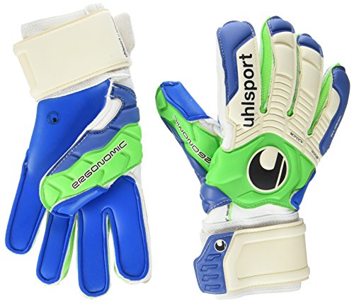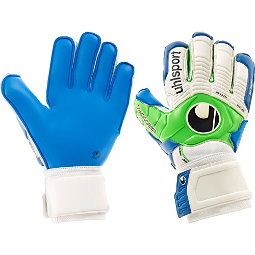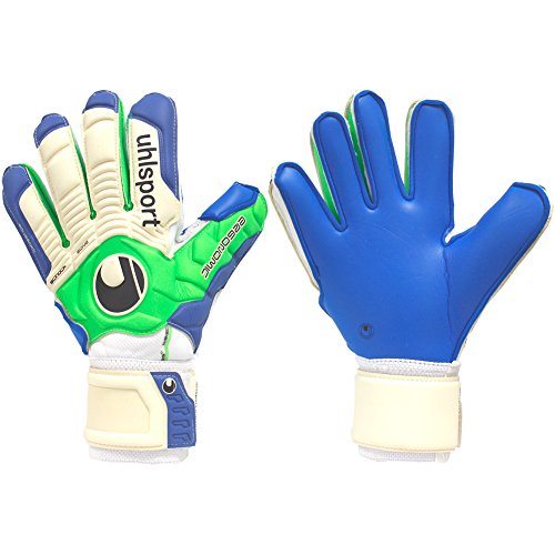 Studio : Uhlsport Publisher : Uhlsport Binding : Misc. Product Description PALM: patented AQUASOFT with special aqua additives in pacific blue. BACKHAND: embossed latex. CUT: classic cut with thumb wrap grants a maximised catching area and good fit. GLOVE BODY: comfortable textile for best breathability and wearing comfort. FASTENING: wrap around latex strap. DESIGN: unique ERGONOMIC-design with new functional upperhand elements - latex gusset for best gripping properties - embossed SCHOCKZONE-element for optimised punching performance and cushioning - 25° angle on the wrist supports the ergonomical hand position - wrap around latex strap and full bandage for good fixation. 0