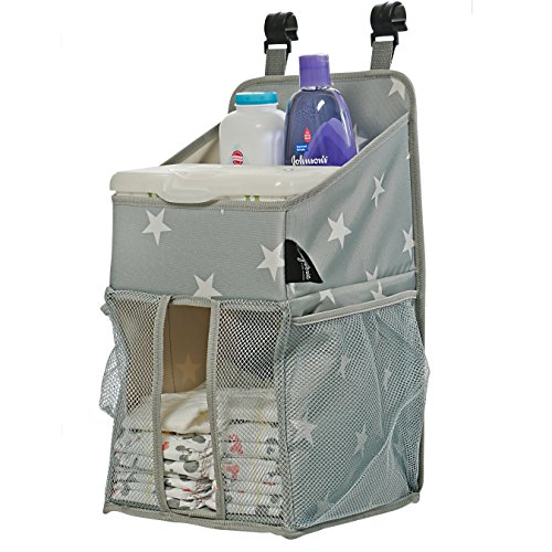 Studio : California Home Goods Publisher : California Home Goods Binding : Baby Product Product Description Diaper duty plays a big part of mommy's and daddy's job description - and it just got so much more organized. Now your changing table can be orderly and organized at all times with California Home Goods' sleek changing table caddy. Diapers, lotions, diaper disposal bags and more will all be within hands reach. The flat compartments is an ideal area to place your warm wipe dispensers or wipe warmer. An added bonus are the 3 side compartments to give you easy access to lotions, oils, baby powder and more. 0
