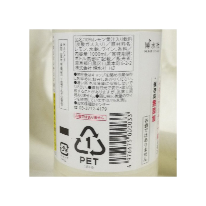 원본상품명: 博水社 ハイサワ? レモン 1000ml×15本