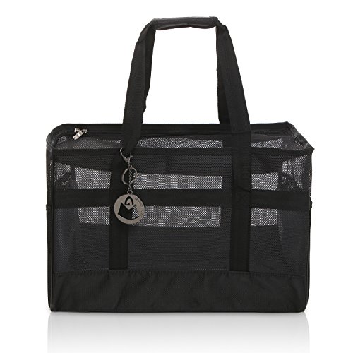 -. Binding : Misc. -. Brand : MG Collection -. Color : Black -. Feature : Carry your small pet in this soft-sided pet carrier with a stylish black mesh tote-style design that provides your pet with a view and fresh air. / Features 2 large pockets (1 on either side of this fashion pet carrier) to carry treats, supplies, or other items. / The sturdy top handles make this carrier bag easy to transport, and they can be held together using the Velcro strap. / **Official MG Collection® product by MyGift® features signature keychain charm** / Approximate Dimensions (in inches): 17.75 W X 11.75 H X 7.75 D. -. Label : MyGift -. Manufacturer : MyGift -. Model : SPOMHNK4232 -. MPN : TB-PET0034BLK-M -. NumberOfItems : 1 -. PackageQuantity : 1 -. PartNumber : TB-PET0034BLK-M -. ProductGroup : Pet Products -. ProductTypeName : PET_SUPPLIES -. Publisher : MyGift -. Size : Medium -. Studio : MyGift -. Title : MG Collection Black Nylon Breathable Mesh Soft Sided Dog & Cat Travel Pet Carrier Shoulder Tote Bag