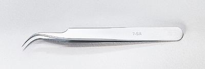Tweezers, stainless steel, curved, fine tips, 4-1/2"L