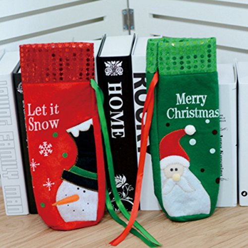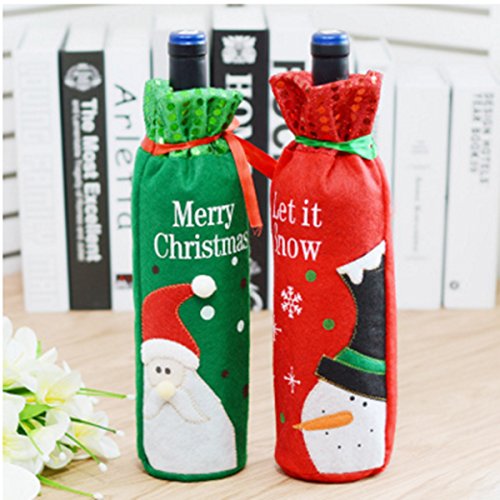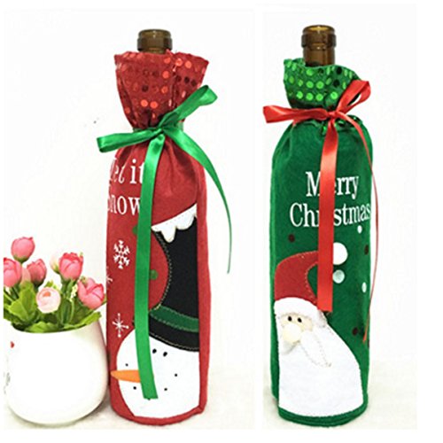 Snowman and Santa Claus Christmas Wine Bottle Cover Holder Gift Bag Xmas Eve Dinner Table Decoration Christmas Gift, Pack of 2