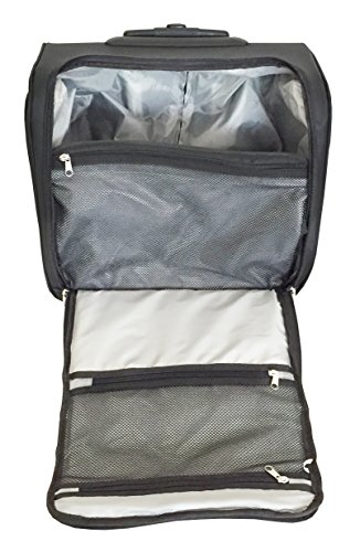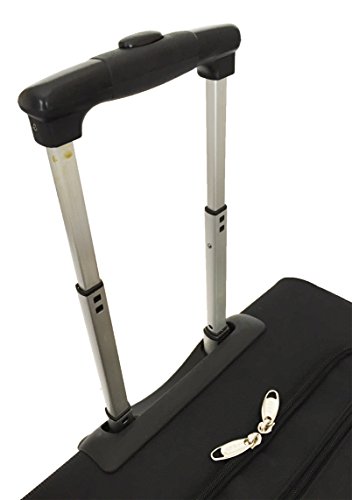 Product Description High quality aluminum telescoping handle system expands with push button. 2 Large Durable Wheels. Handle on top. Inside: large compartment, 2 flaps with zipper pockets and netted pockets. Multiple side and front pockets. High Quality Construction. The main compartment can be locked (locks included). 0
