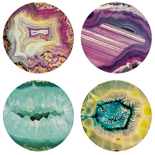 CoasterStone Absorbent Coasters, "Multicolored Agates Assorted" (Set of 4), 4-1/4", Multicolor
