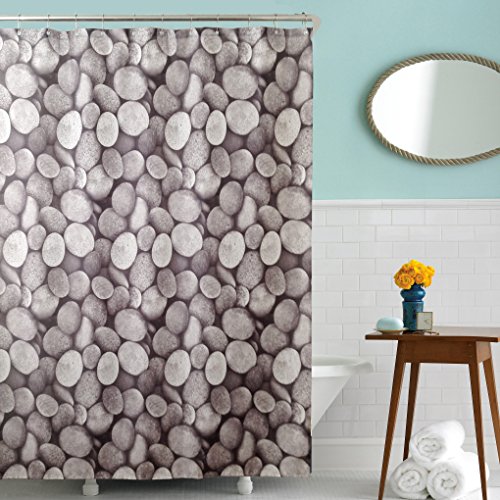 - High Quality Polyester Fiber Material and Unique Design:The shower curtain is made out of double thickening polyester fiber material,increase privacy,very durable and no smell,shower curtain waterproof and can be use as liner alone without any additional curtains.This unique pebbles design blends fashion and practical function to suit any bathroom decor