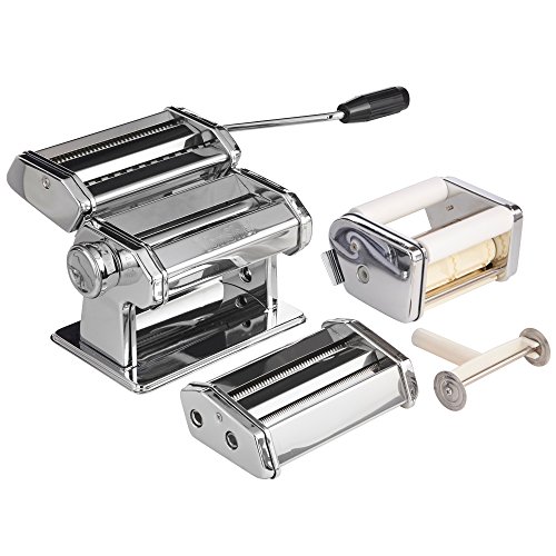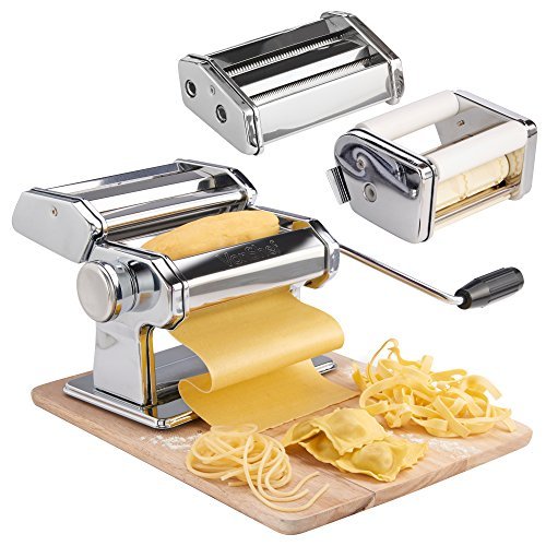 Studio : Designer Habitat Publisher : Designer Habitat Product Description Enjoy fresh pasta whenever you'd like with the VonShef Pasta Maker. Fresh ingredients can be easily transformed into an endless variety of homemade pasta dishes. Why not impress dinner guests with homemade ravioli made from scratch, with your choice of fresh fillings? Or treat the family to a classic lasagne with layer upon layer of fresh egg pasta. The pasta maker can be adjusted to produce pasta at varying thickness for whatever your culinary needs - also can be used to roll out sugar fondant for use in cake decoration! Sturdy and stylish, the VonShef pasta maker is an attractive addition to any kitchen and great talking point with guests! 0