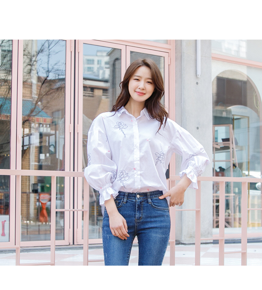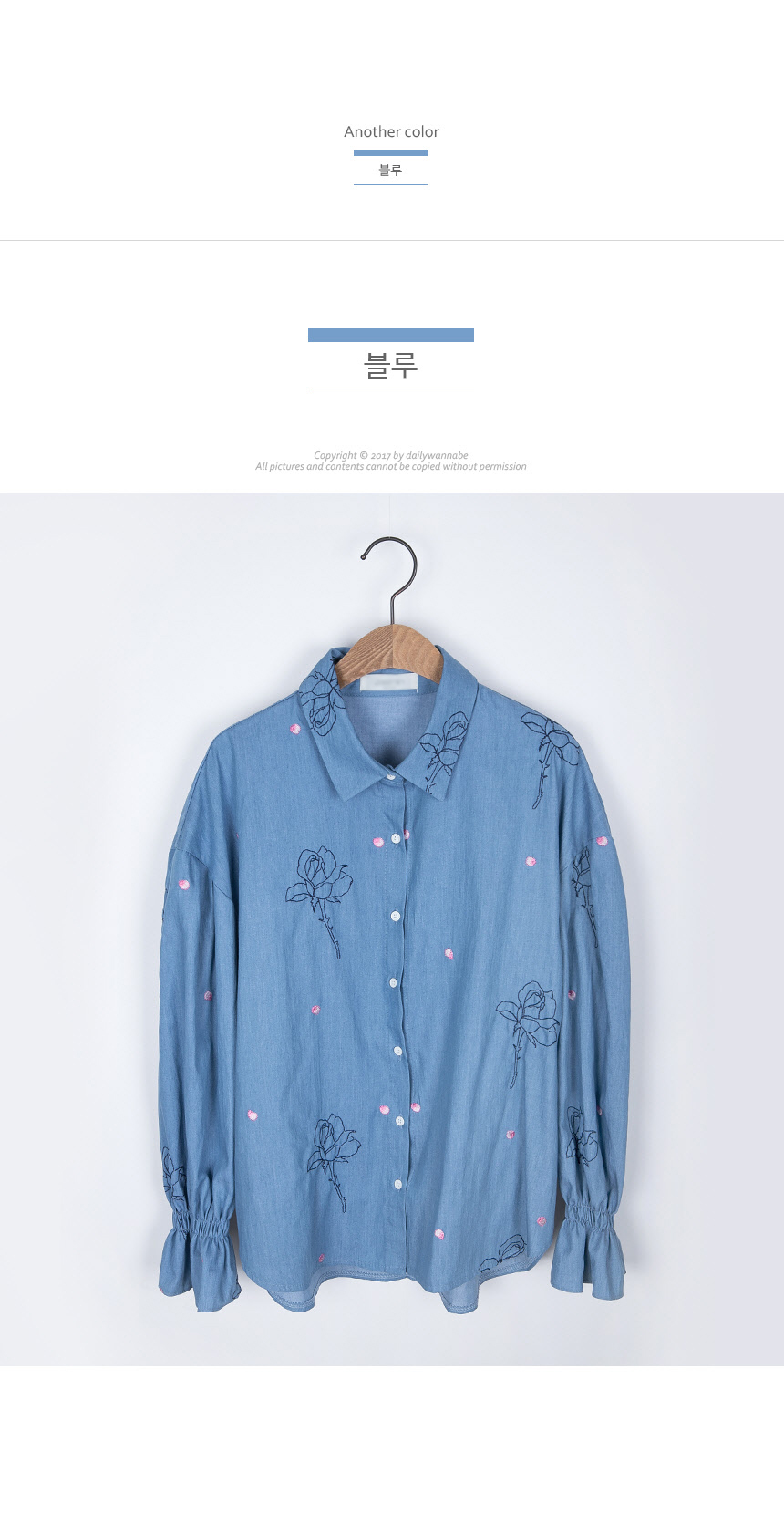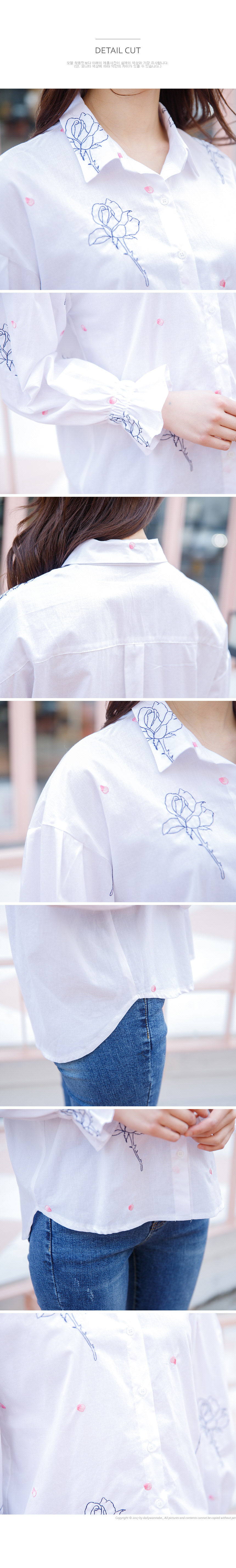 심플한 기본셔츠에 플라워 자수 디테일을 넣어주어