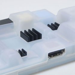 > SWEETBOX > We pushed the boundaries of the casing to the limits, that's why we can affirm that no one will ever be able to make a more compact case for the Raspberry Pi Model B. The shell is a thick nylon skin that wraps snugly the Raspberry Pi board, keeping from dust, protecting from shocks, scratches and extending the lifetime of your Pi> HEATSINKS > The set of Heatsinks has been designed by Graspinghand and CNC machined to fit the Sweetbox case perfectly. They work great with or without a case though, allowing your Raspberry Pi to run around 4 ℃ / 7.2 ℉ cooler at full calculation. The set comes with 3 ready-to-mount thermal pads > MATERIAL > The case is injected in high performance Nylon EMS Grilamid, used for tools, electrical equipments and glasses frames, no need to tell you that this material is nearly unbreakable > DIMENSIONS > 95mm x 65mm x 25mm > WEIGHT > 35 g > REMARKS > Raspberry Pi Computer not included / Patent pending / Beware of copies / You can find more detailed information about the Sweetbox on www.graspinghand.comFeature