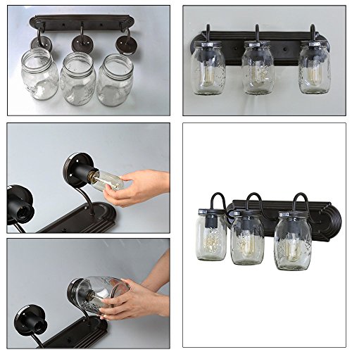 LNC Glass Mason Jar Wall Sconces 3-Light Wall Lamps Sconces Wall Lighting Use E26 Bulb