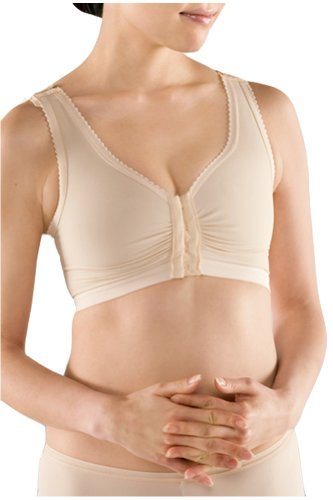 The B style bra has a simplistic design with a 1" elastic band under the bust line. It is made of F5 certified fabric and is most commonly used following an augmentation of the breasts. This bra has adjustable hook & eye shoulder straps and front opening , no underwire and no darts or seams. Perfect for: Breast Lift, Breast Augmentation.Feature