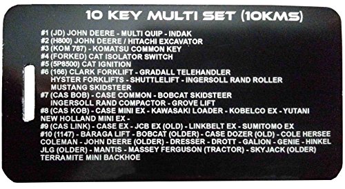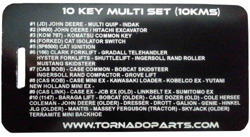 Studio : TORNADO HEAVY EQUIPMENT PARTS Publisher : TORNADO HEAVY EQUIPMENT PARTS Binding : Misc. Product Description ***INCLUDES A DETAILED COLOR PRINTED GUIDE WITH PICTURES TO HELP YOU SELECT THE KEY THAT YOU NEED!*** THIS SET ALSO INCLUDES A LASER ENGRAVED TAG THAT STAYS ON THE KEY RING TO HELP YOU CHOOSE THE CORRECT KEY. This key set includes keys that work with the following machines: It is important to note that the included keys are NOT one size fits all, they work with specific machines. If you have a questions about a specific application please ask and we will get back to you quickly! This small set works on over 80 pieces of equipment! ASV Baraga Broce Broderson BobCat Case Caterpillar Clark-Michigan Cole-Hersee Coleman Crown Daewoo Ditch Witch Dresser Dressta Drott Dynapac Fiat Galion Genie Gradall Grove Hinkel Hitachi Hypac Hyster Ingersoll-Rand International JCB JLG John Deere Kalmar Kawasaki Kobleco Komatsu Link belt Mantis Massey Ferguson Multiquip Mustang New Holland Pollack Sakai Shuttlelift Skyjack SkyTrack Sumitomo Tennant Terex Terramite TimberJack Tiger Cat Vermeer Volvo Yale Yutani 0 |