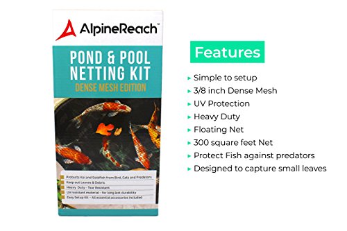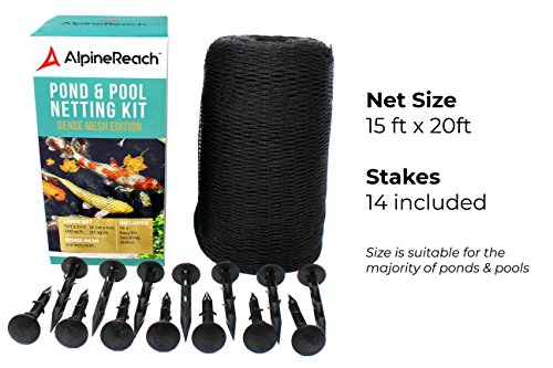 -. Title : Pond & Pool Netting 15 x 20 ft - DENSE FINE MESH HEAVY DUTY NET | Cover for Leaves Cleanup | Protects Koi Fish from Predators, Birds Blue Heron, Cats, UV Protection All Accessories Stakes Included