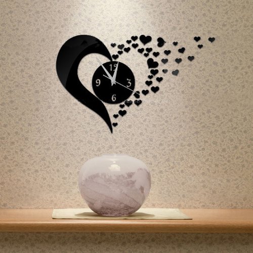 Toprate(TM) Love Loving Hearts Wall Clock Fashion Mirror Wall Clock Removable DIY Acrylic 3D Mirror Wall Decal Wall Sticker Decoration (Black)
