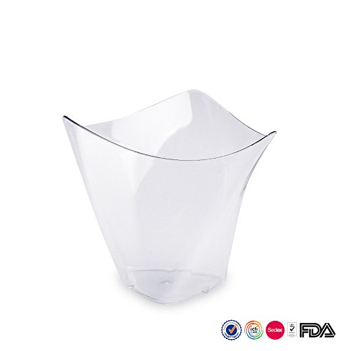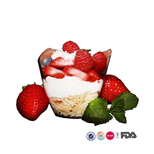 Set of 100 count dessert cups,Dimensions: 1.7”(Bottom Width) x 3”(Top Width) x 3”(Height) Capacity: 6.2 Ounces ,Material:food safe PS plastic Net weight:10g/pc