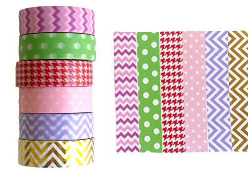 - 6 Pack of Washi Tape – The Signature Set by Dazzle Washi Tape includes 6 distinct patterns and colors that are made with your next project in mind. This decorative tape is perfect for adding splashes of color to back to school gear, stationary, diaries, planners, and more!