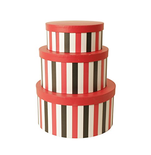 -. Feature : Nested set of 3 stacking boxes / Red, white & black vertical stripes / Detachable red lids / Sizes: LG: 10.5 x 5.5, MD: 9 x 4.75, SM: 7.75 x 4