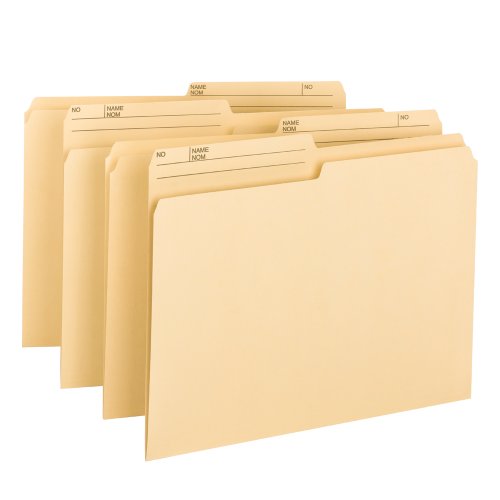 -. Feature : An eco-friendly and economical way to file your documents / The folder is made from 100% recycled content / Tab P.R.Inted "NAME/NOM; NO" / 1/2-cut tab, second position / Acid free / Contains 100% recycled content, 30% post-consumer material