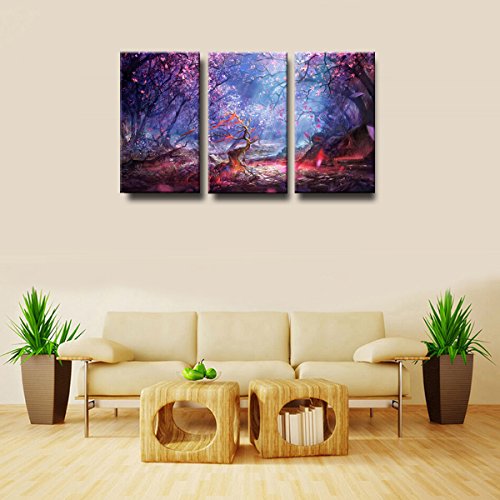 -. Title : FASKUNOIE-Cherry Blossom Trees in the Dream Large Wall Art on Canvas Artwork Modern Wall Art Trees Paintings for Room Decoration 12x24 in 3 pcs\set