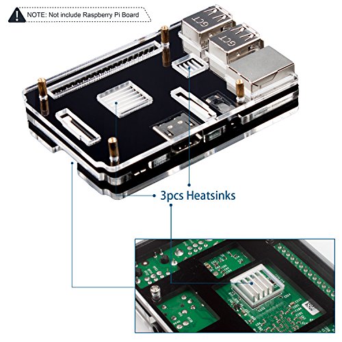 Smraza for Raspberry Pi 3 Case with 2.5A Power Charger and Bonus ON/OFF Switch Cable, 3pcs Heatsink Compatible with Raspberry Pi 3b & 2b