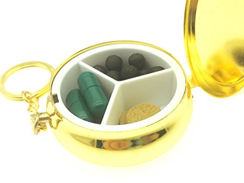 Solid Quality and User-friendly Design. The box (stainless steel and plastic) and the bottle (aluminium alloy) are medical grade. Clasp and spring latch design keeps pills safely in the box. The lid opens by pressing the button