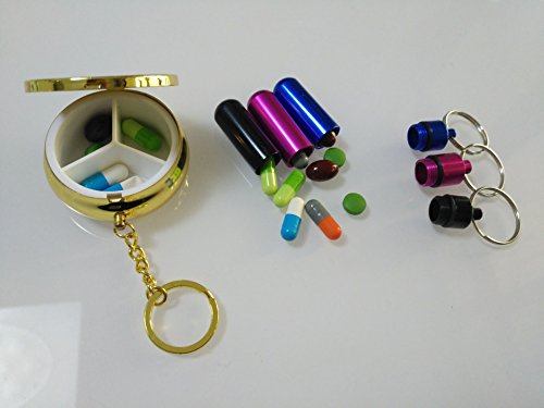Convenient Pill Organizer Set. This set including 1 box and 3 bottles is to keep pills organized and safe and fit your needs in different positions. Little size fits most of pockets, purses or travel bag.