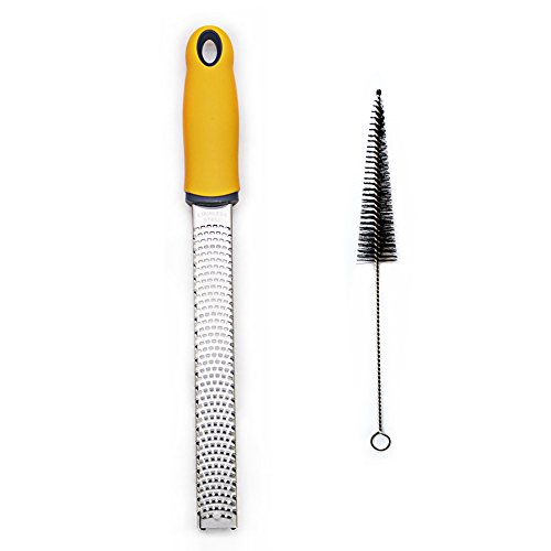 Aeaker Citrus Lemon Zester & Cheese Grater — Parmesan Cheese, Lemon, Ginger, Garlic, Nutmeg, Chocolate, Vegetables, Fruits - Razor-Sharp Stainless Steel Blade Cleaning Brush Dishwasher Safe (Yellow)