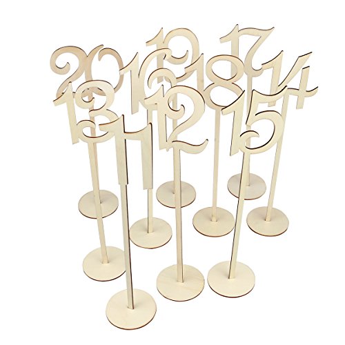 OULII Wedding Table Number Holders with Holder Base 11-20, 10pcs(Wood Color)