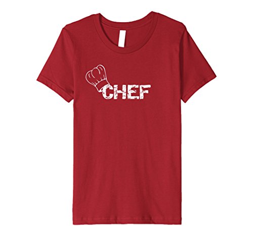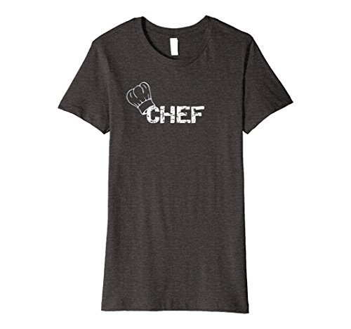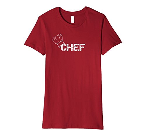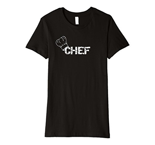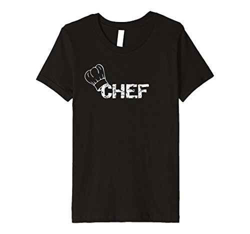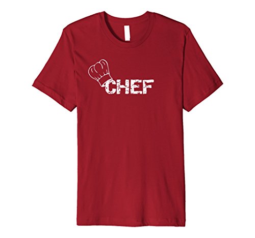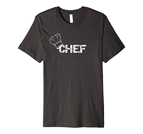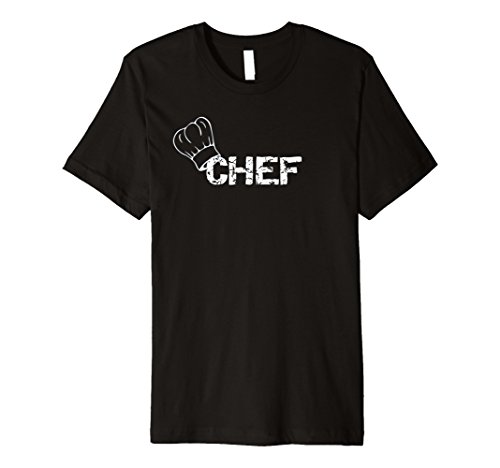Product Description This chef shirt features the word chef in a distressed print with a chefs hat hanging off the C. Perfect for chefs or anyone else who works in a kitchen! 0