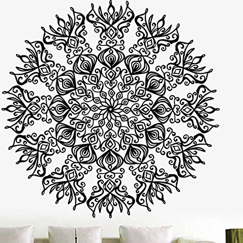 Amaonm Removable Black Vinyl Circle Dot Flowers Wall Decals Buddhism fireworks Flower Vines Wall Stickers Mrurals Home art Decor for Bedroom Living room TV Background Decorations 11.8"x11.8"