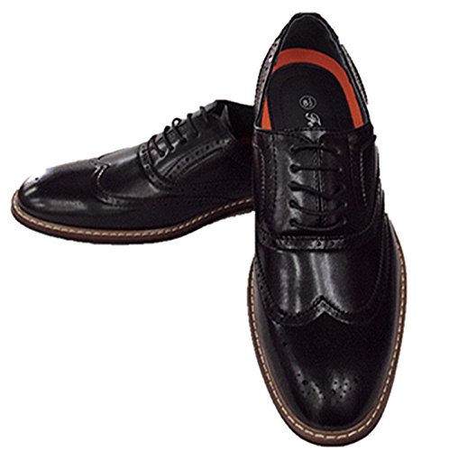 -. Binding : Apparel -. Brand : Ferro Aldo -. Department : mens -. Feature : SHOES RUN 1 FULL SIZE BIG. ORDER 1 FULL SIZE SMALLER FROM YOUR ACTUAL U.S SIZE / Original Perforation Details / Lace Up Block Heel Brogue Style / Versatile Formal / Casual Denim Friendly / Brand New In Box / Synthetic Leather -. ProductGroup : Shoes -. ProductTypeName : SHOES -. Title : Ferro Aldo Men's Black Dress Shoes Wing Tip Brogue Modern Shoes
