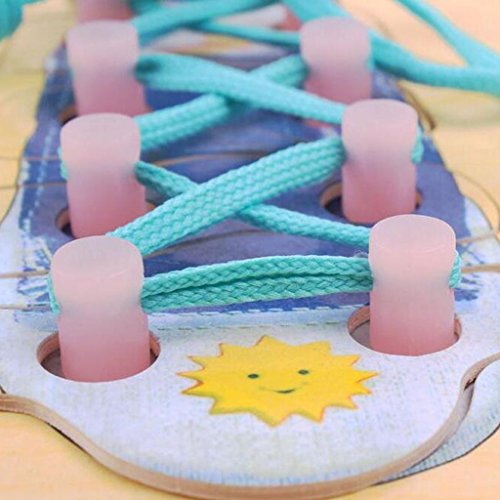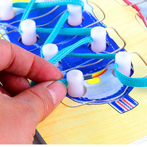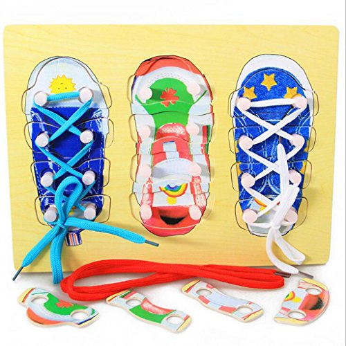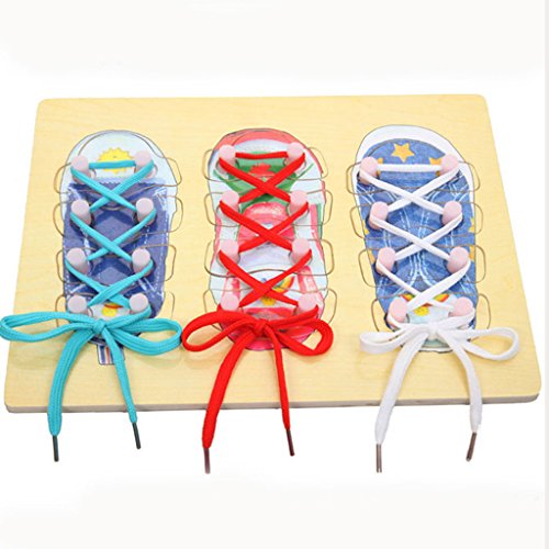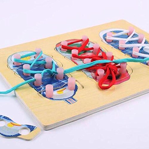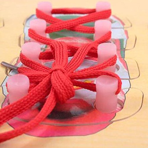 -. Feature : Set of wooden Shoe Lacing Toys in bright colors / Can teach your baby how to tie shoelace during their playing / Good for expanding and practicing your kid's patience, potential, assembly ability / Size: Approxi. 30 x 22cm /11.81 x 8.66 inch / Material: Wood