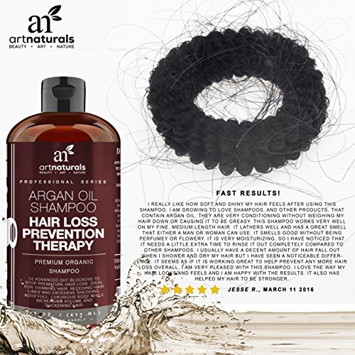 - Title : Art Naturals Organic Argan Oil Hair Loss Prevention Shampoo 16 Oz - Sulfate Free -Best Treatment for Premature Hair Loss, Thinning & First Signs of Balding for Men & Women- With Biotin 3 Months Supply
