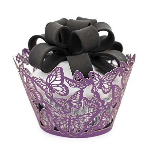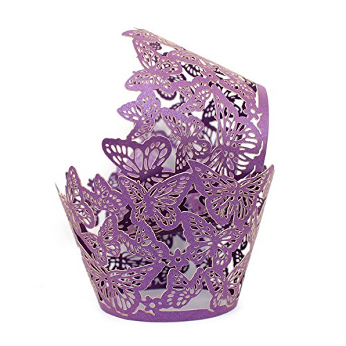 KEIVA Pack of 60 Mini Dancing Butterfly Lace Laser Cut Cupcake Wrapper Liner Baking Cup Muffin Case Trays Wedding Birthday Party Decoration (Purple)