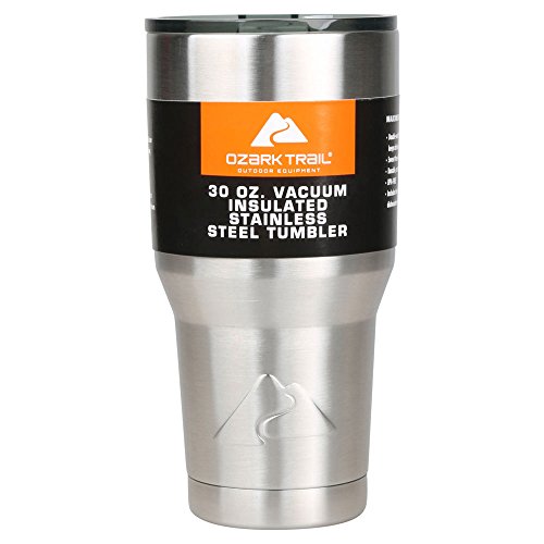 Whether you're on a camping adventure or jumping into your car for your morning commute, you can keep your thirst under control with this handsome and durable Ozark Trail tumbler. This 30-ounce travel tumbler is made with high-grade 18/8 stainless steel, and is double-walled and vacuum-sealed for maximum temperature control, so it's equally suited to sustaining the temperature of both hot and cold beverages. Whether you like to keep your sweet tea chilled on a hot summer day, or would rather keep your hot coffee from going lukewarm 10 minutes into your commute, this travel cup has you covered. Featuring a durable, rust-proof and sweat-free design, this stainless steel tumbler is BPA-free and comes with a lifetime warranty. Ozark Trail 30-Ounce Double-Wall, Vacuum-Sealed Tumbler: Great for both hot and cold liquids Ideal for a range of activities Durable, made of high-grade, double-walled stainless steel BPA free Lifetime warrantyFeature